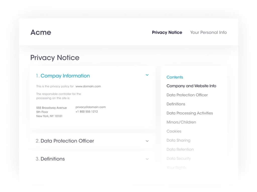 Automatically maintain and renew policies and notices using a centralized privacy dashboard for streamlined management and compliance adherence across all aspects of data handling.